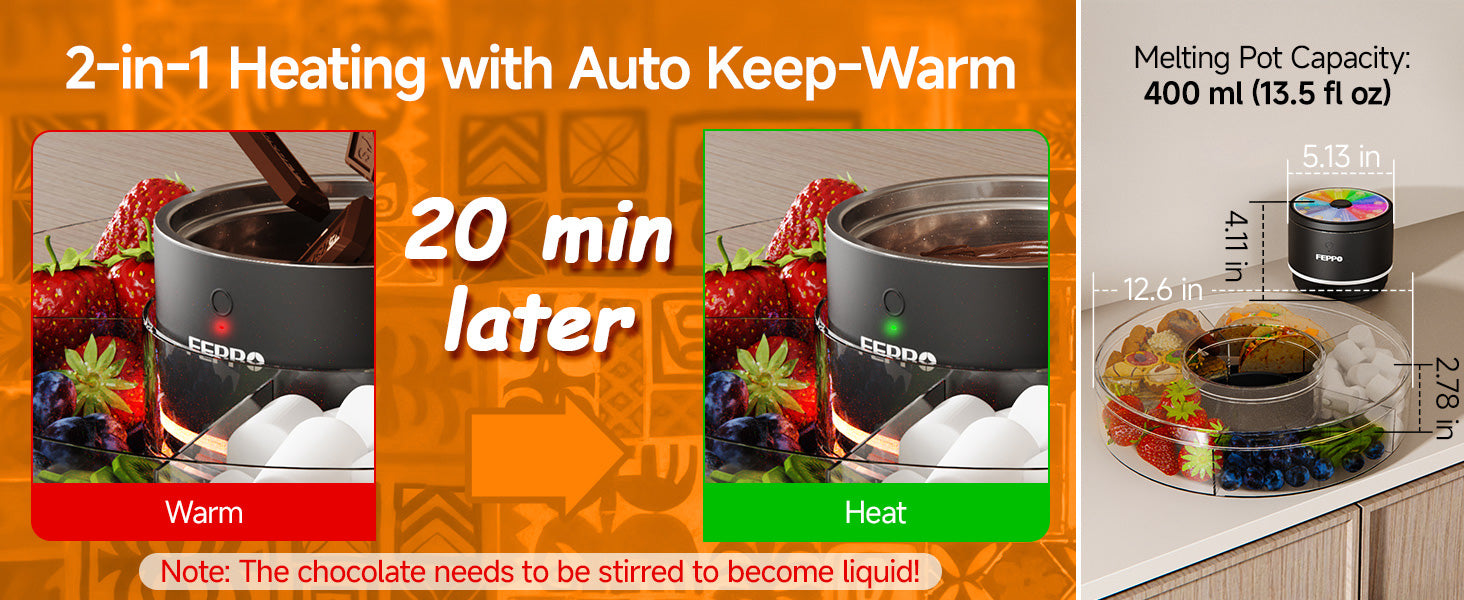 FEPPO Cordless Electric Fondue Pot Set